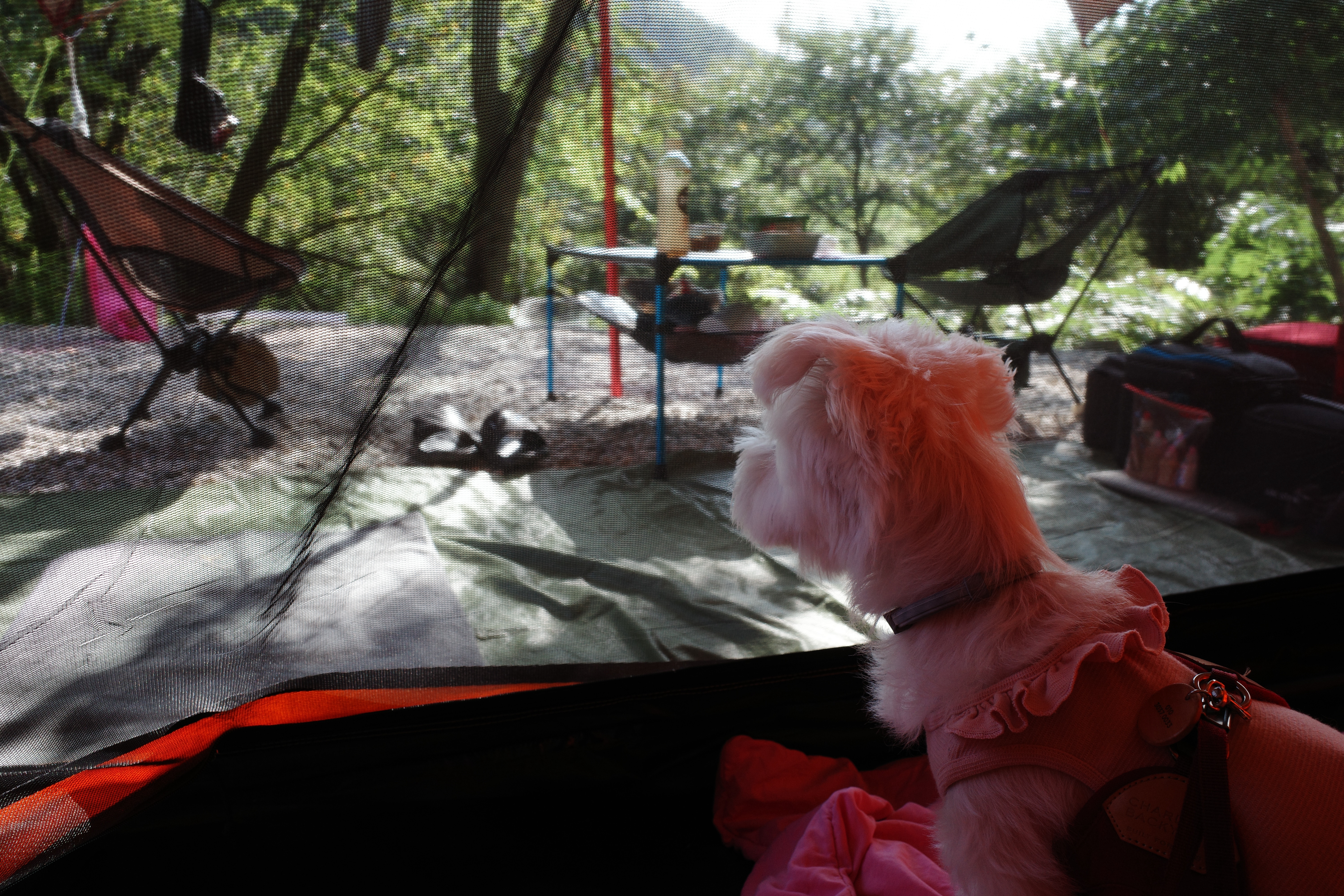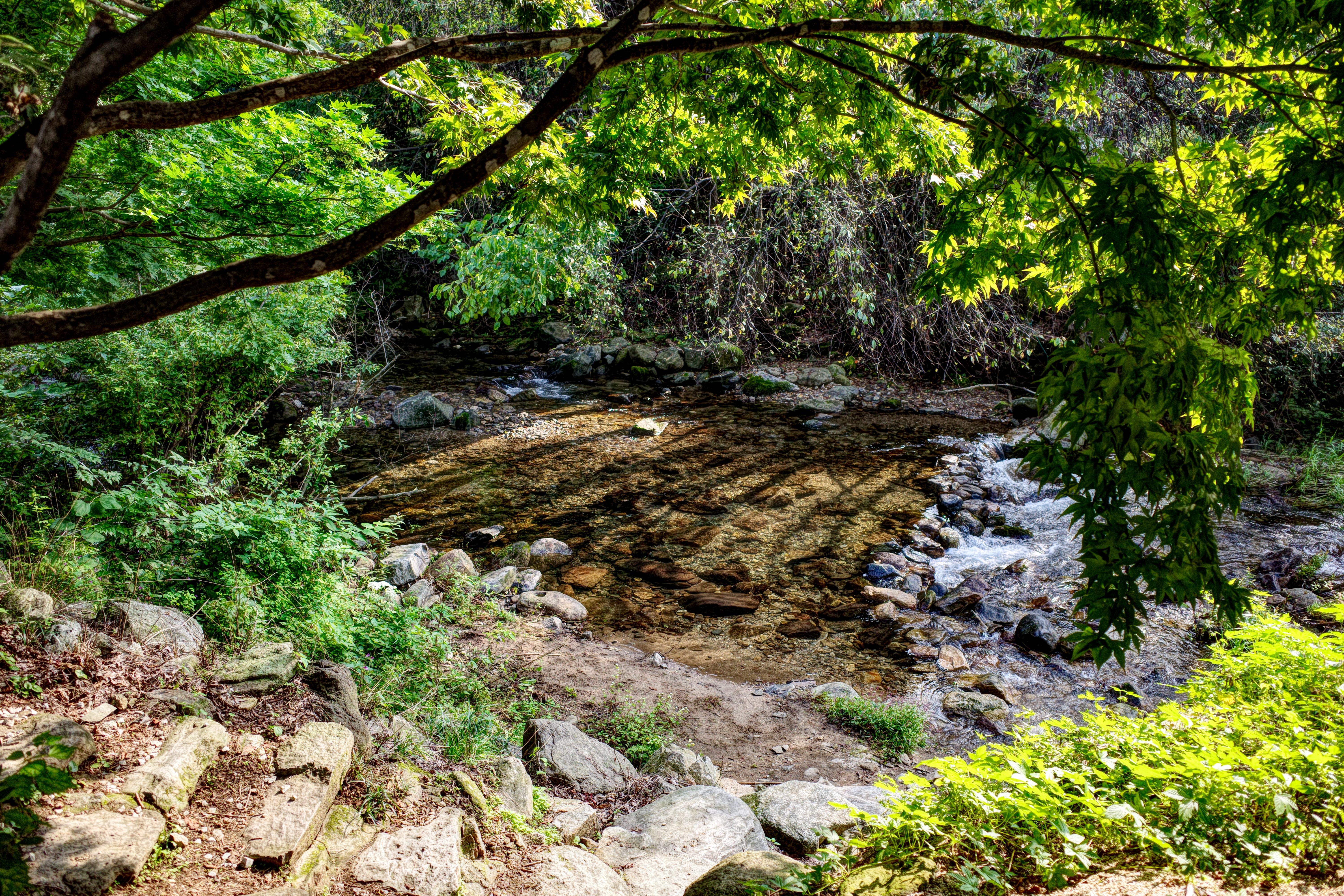 - 앞쪽에 계곡이 있고 뒤쪽은 산이라 적당히 그늘이 있고 시원함.